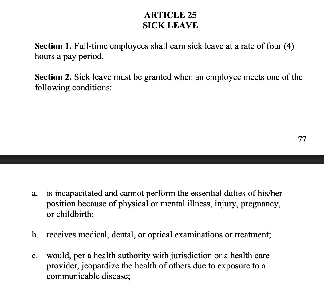 Keep in mind that Article 25 Section 2 has a list of "must" reasons. Section 3 has a list of "may" reasons. The agency may ask you which one of those you are. Additionally, Article 25, Section 7 states that as long as you’re not on a SL letter, the only time they can require a “medical certificate” is when it is for more than four days.